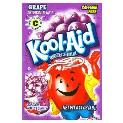 Enjoy a refreshing beverage with the Kool-Aid Grape Unsweetened Drink Mix. This caffeine-free drink contains 10 percent of the daily nutritional value of vitamin C. Use it to make ice cubes for punch or adult beverages. Freeze it to make slushies, popsicles or ice cube sticks. You can also blend the grape-flavoured drink mix with other flavours like raspberry and lemon-lime for a tongue-pleasing treat. This gluten-free packet makes two quarts. It dissolves quickly in water. Just add sugar, honey or a no-calorie sweetener for a sweet treat.