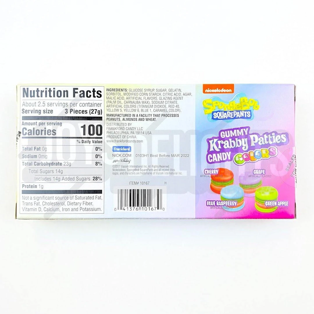 Ingredients: Glucose Syrup, Sugar, Gelatin, Sorbitol, Modified Corn Starch, Citric Acid, Agar, Malic Acid, Artificial Flavours, Glazing Agent (Coconut Oil, Carnauba Wax),Sodium Citrate, Artifical Colours (Red 40, Yellow 5, Yellow 6, Blue 1, Caramel Colour).Â