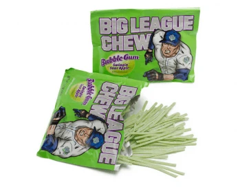 Pretend to be in the big leagues with Big League Chew Swingin’ Sour Apple gum! Take a pinch from the pouch or take a big hunk and chow down! This sour apple flavoured gum is a real hit!