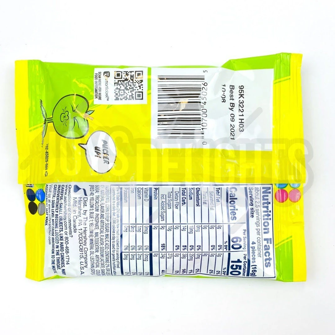 Ingredients: Corn Syrup, Sugar, Malic Acid, Contains 2% or less of Natural & Artificial Flavour, Sodium Lactate, Baking Soda, Tricalcium Phosphate, Maltodextrin, Artificial Colours (Red 40, Yellow 5, Blue 1, Yellow 6), Mineral Oil, Soy Lecithin.Â