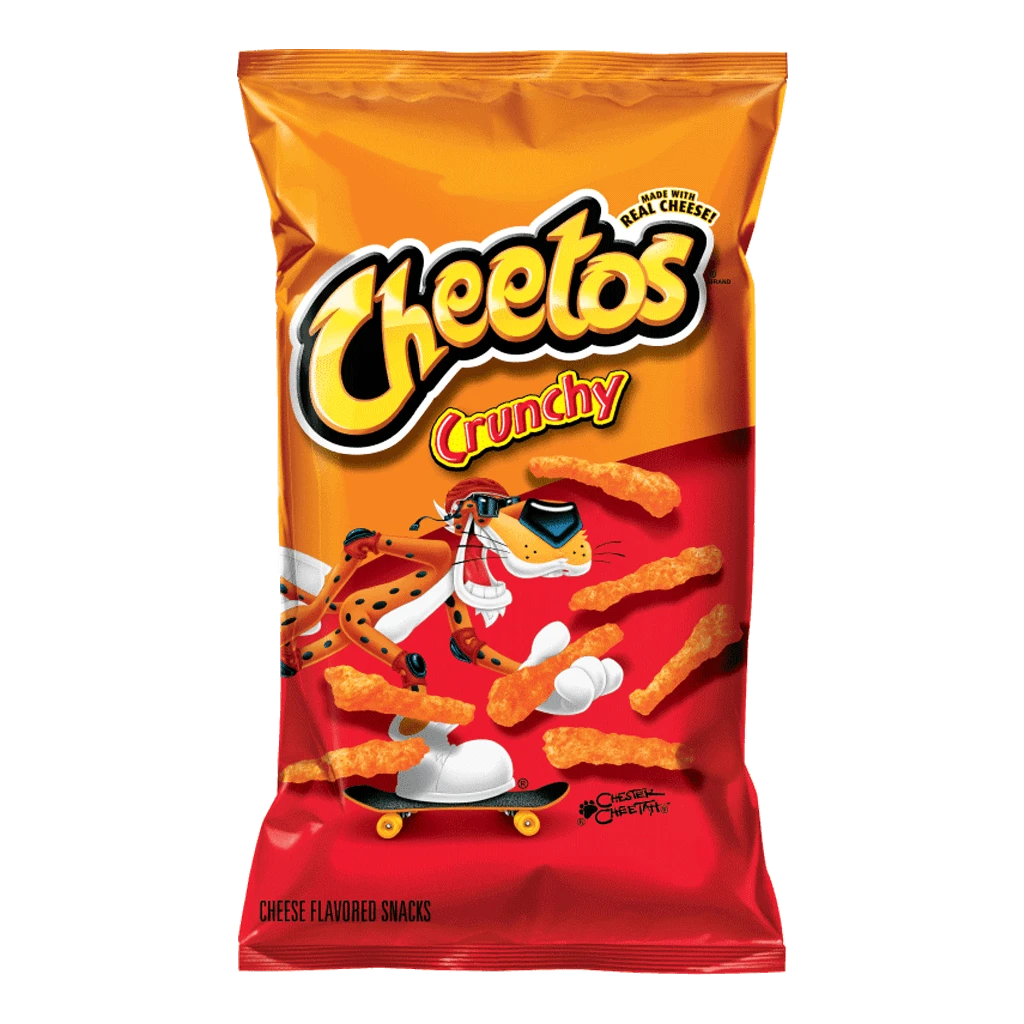 Cheetos Crunchy corn snacks are deliciously cheesy and perfect for enjoying on the go! Made with real cheese and zero grams of trans fat, these snacks are a guilt-free snack. Cheetos are a classic, cheesy treat that are fun and delicious for everyone! Make sure you lick the dust from your fingers! BEST BEFORE 30/09/2022