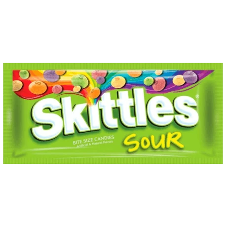 These Sour Skittles will have your lips puckering but you won’t be able to stop reaching for more! In classic flavours like sour grape, sour strawberry, sour lemon, sour green apple, and sour orange, try combining different colours for a new taste sensation! These Sour Skittles are different from the Australian ones in that the sour powder coats the Skittle, instead of being sour on the inside of the Skittle.