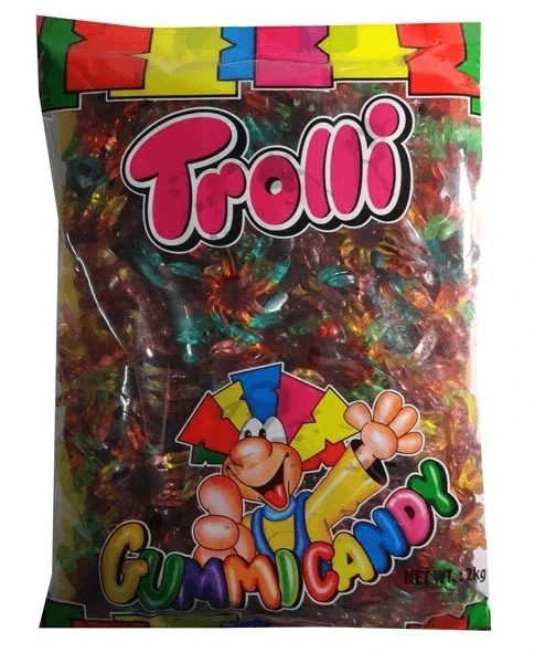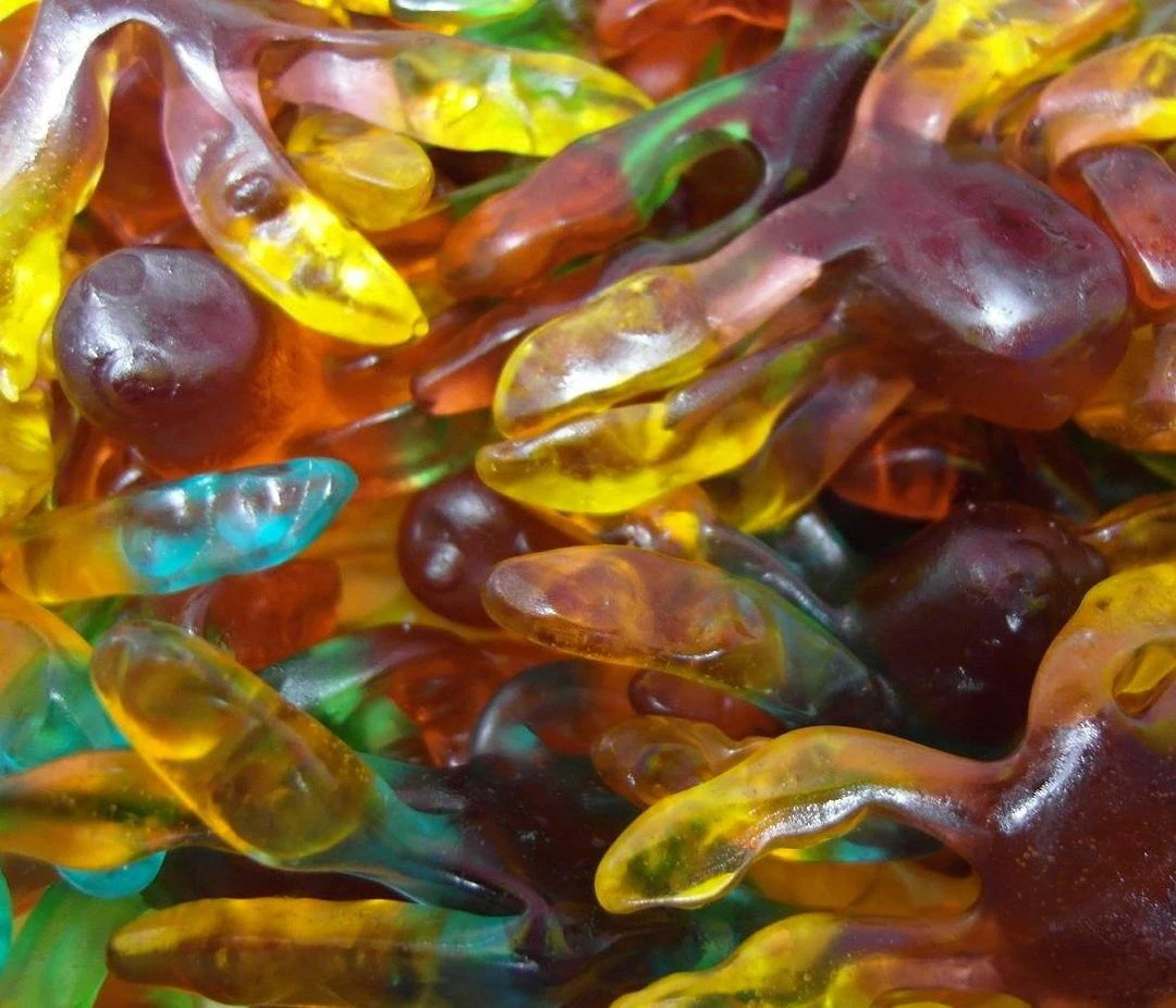 Ingredients: glucose syrup(corn), sugar, gelatin, acid(330), flavours, colours (102/129/133), vegetable oil (coconut/palm), glazing agent (901,903)