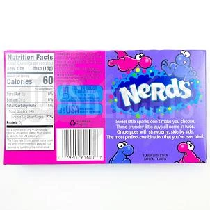 Dextrose, Sugar, Malic Acid, Less than 2% of Corn Syrup, Natural Flavours, Carnuabe Waz, Colour Added: Carmine Colorur, Blue 1 Lake, Blue 2 Lake, Red 40 Lake. May contain Egg. Produced with genetic engineering.Â