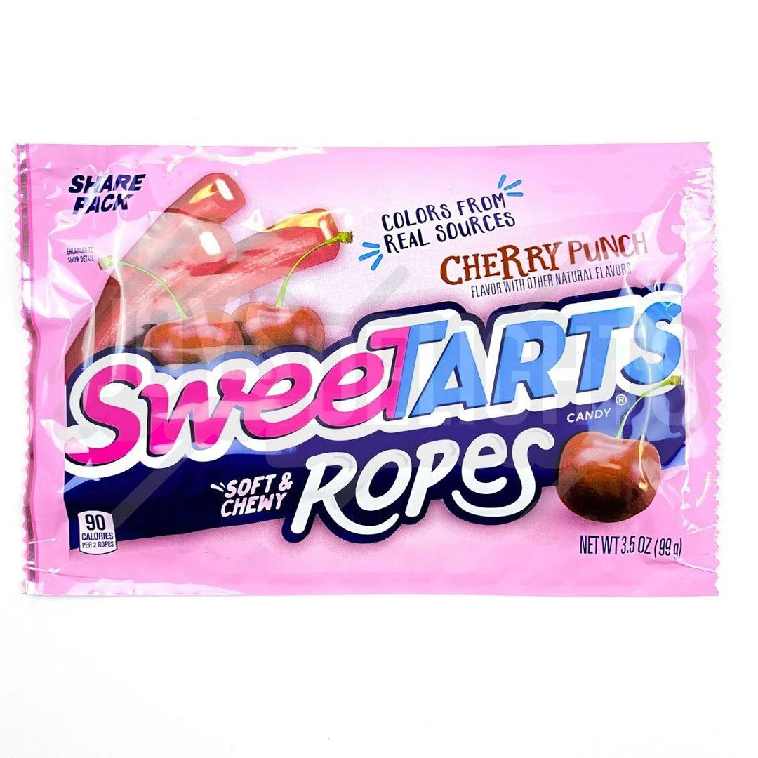 SweeTARTS Cherry Punch Soft and Chewy Ropes® take the classic flavor fusion a step further—creating bendable fun that’s licorice and SweeTARTS all in one. Chewy with a fruit-punch filling, SweeTARTS Ropes® explodes with a mouthwatering maze of texture and taste that makes candy lovers go crazy.