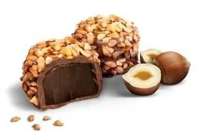 Milk chocolate truffle with hazelnut flavoured centre covered in caramelised hazelnut pieces.Â